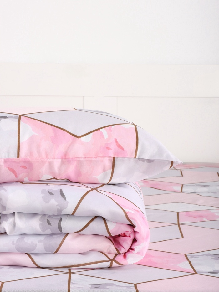 Обновите свою спальню 1.5-спальным комплектом постельного белья «Экономь и Я» из микрофибры в розовом и белом, где мраморная тематика добавляет спокойствия. Этот комплект поддерживает ваше благополучие, предлагая пространство для отдыха, подобное тихому убежищу среди повседневных забот. Он подходит для индивидуального использования, помогая сосредоточиться на себе и близких.