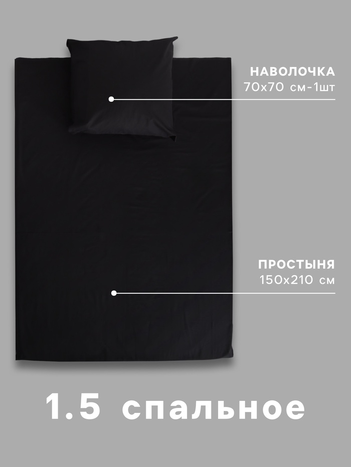 Постельное бельё 1.5-спальное «Экономь и Я», поплин, чёрное — Характеристики