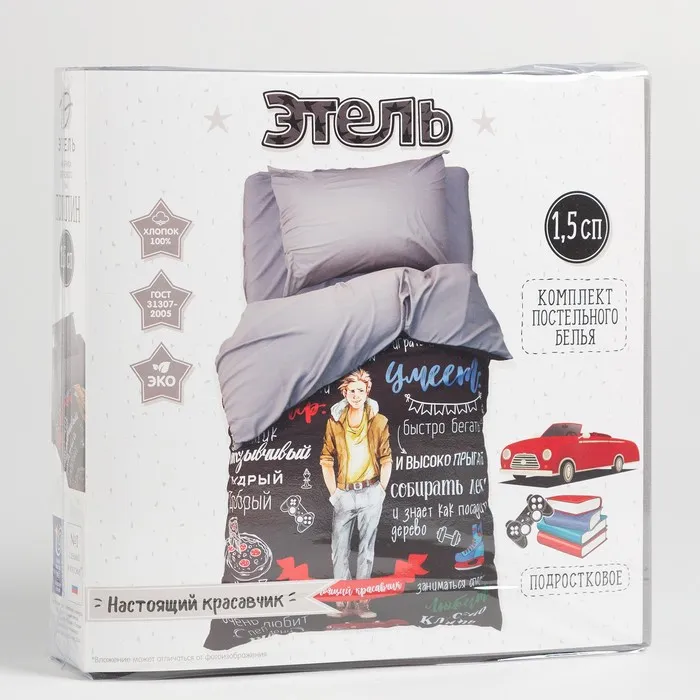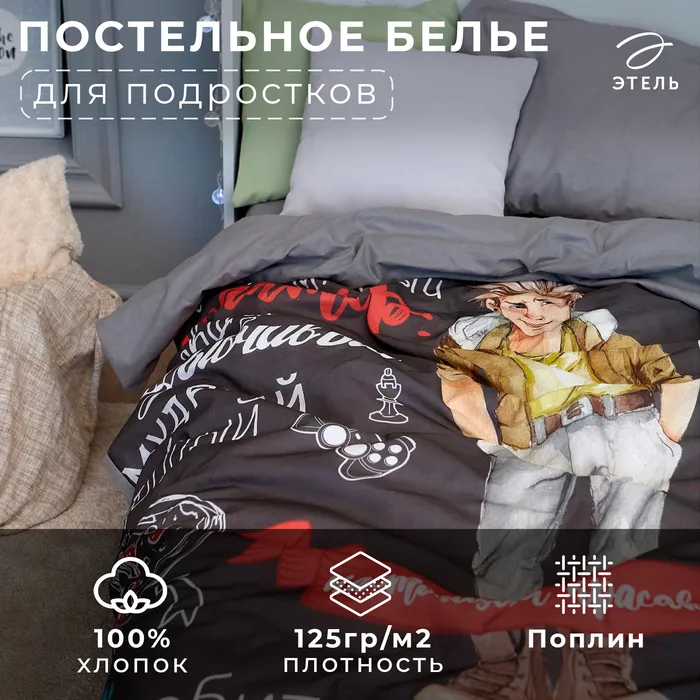 Постельное бельё 1.5-спальное «Этель. Настоящий красавчик», поплин — Характеристики