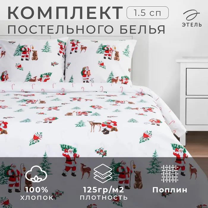 Постельное бельё 1.5-спальное «Этель. Новогодний лес», поплин — Характеристики