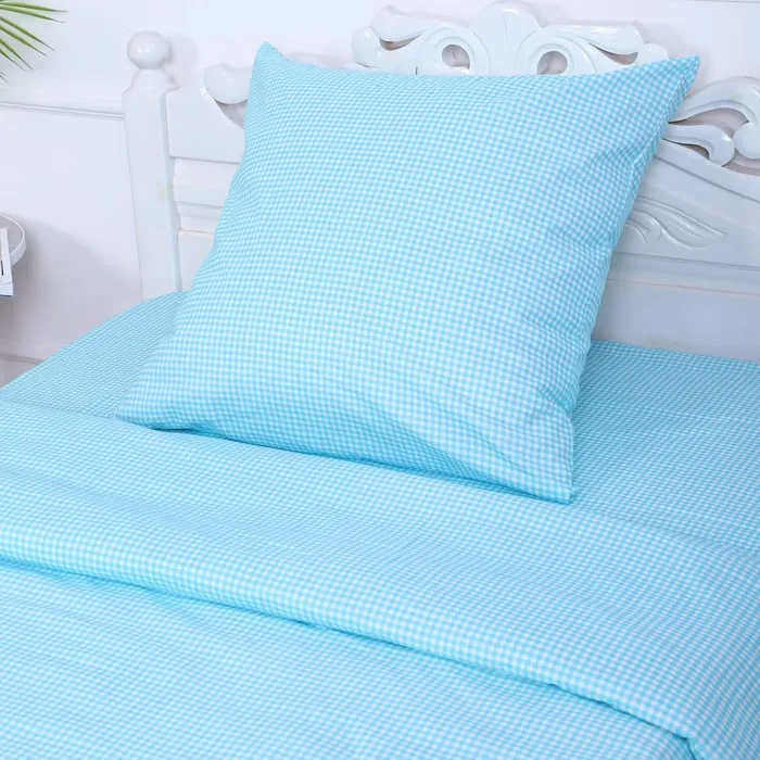 Постельное бельё 1,5сп Клеточка бирюзовый, 150х210см, 150х210см, 70х70 см, бязь, 120 г/м, 100% хлопок — Характеристики