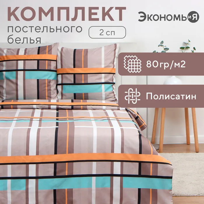 Постельное бельё 2-спальное «Экономь и Я. Клетка (вид 3)», полисатин — Характеристики
