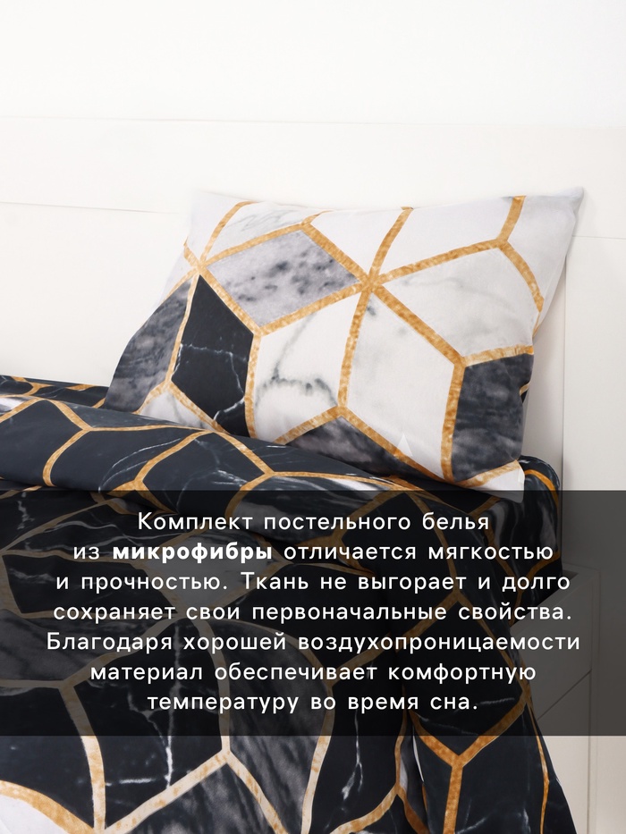 Постельное бельё 2-спальное «Экономь и Я», микрофибра 60 г/м², чёрное, белое — Характеристики