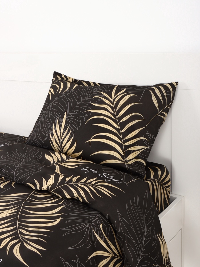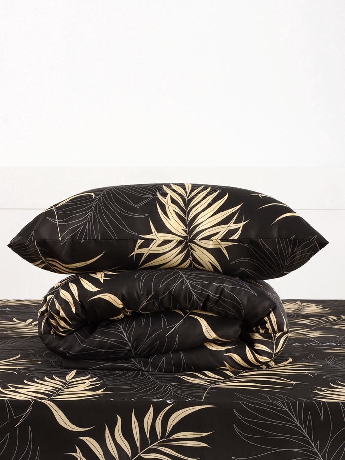 - Комплект обеспечивает полный набор для удобного сна: пододеяльник, простыня и две наволочки.