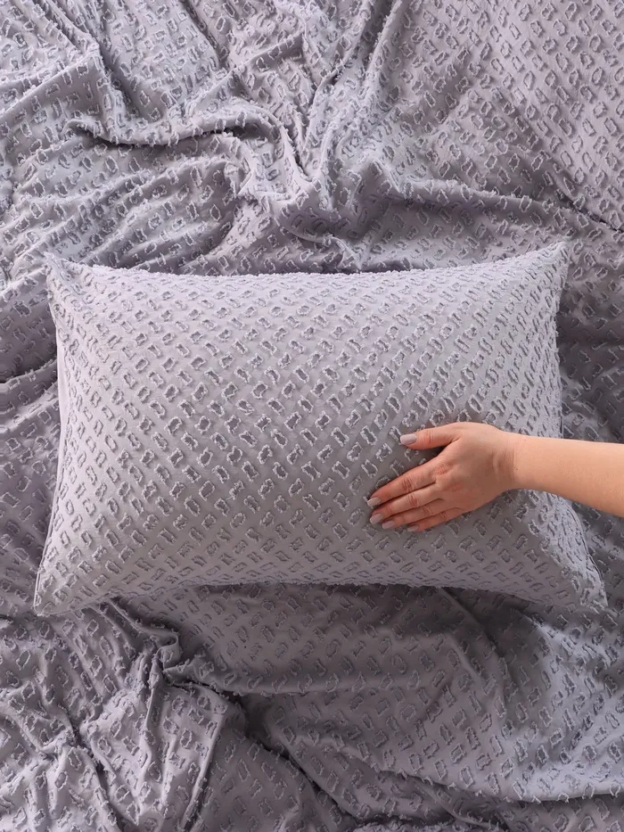 Постельное бельё 2-спальное «Тафтинг квадрат» 175×215 см,200×230 см,50×70 см-2 шт., серо-сиреневое,110 г — Характеристики