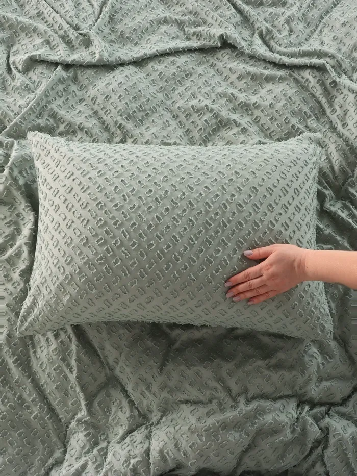 Постельное бельё 2-спальное «Тафтинг квадрат» 175×215 см,200×230 см,50×70 см-2 шт., зелёное, 110 г/м² — Характеристики