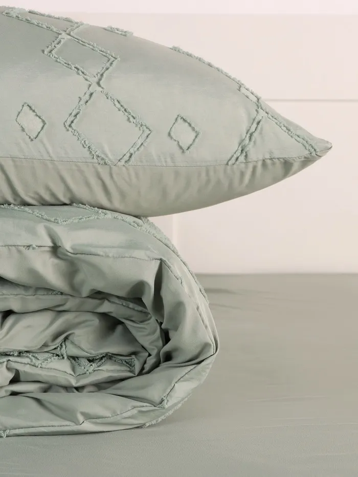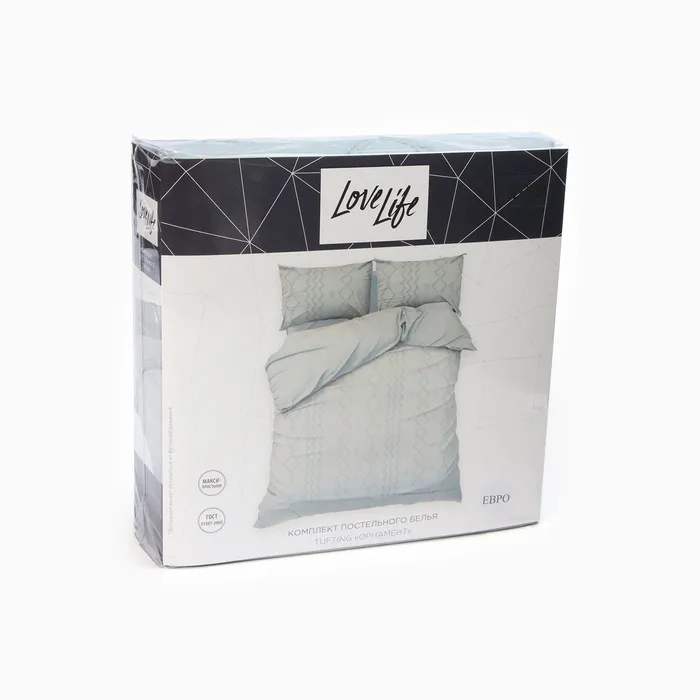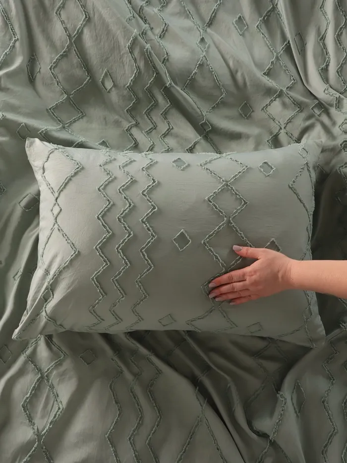 Постельное бельё 2-спальное «Тафтинг орнамент» 175×215 см,200×230 см,50×70 см-2 шт., зелёное, 110 г/м² — Характеристики