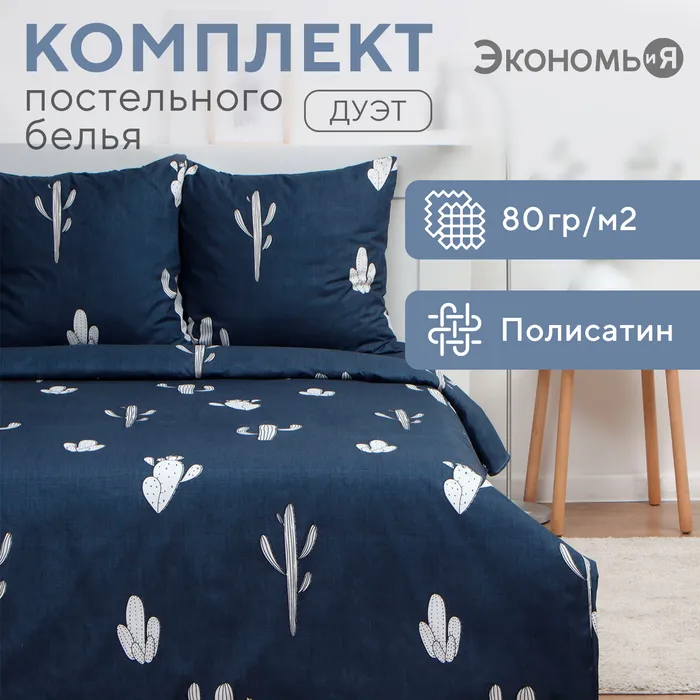 Постельное бельё дуэт «Экономь и Я. Кактусы», полисатин — Характеристики