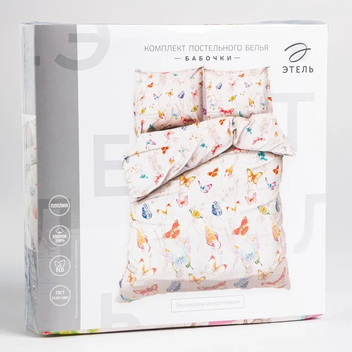Постельное бельё "Этель" 1,5 сп., Бабочки, размер 143х215 см, 150х214 см, 70х70 см - 2 шт. — Характеристики