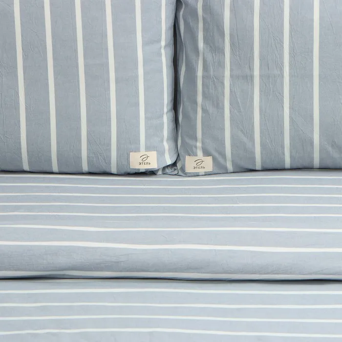 Постельное бельё Этель 1.5 сп Blue stripe, 155х210см,160х240см,50х70-2шт, жатый хлопок,140 г/м2 — Характеристики