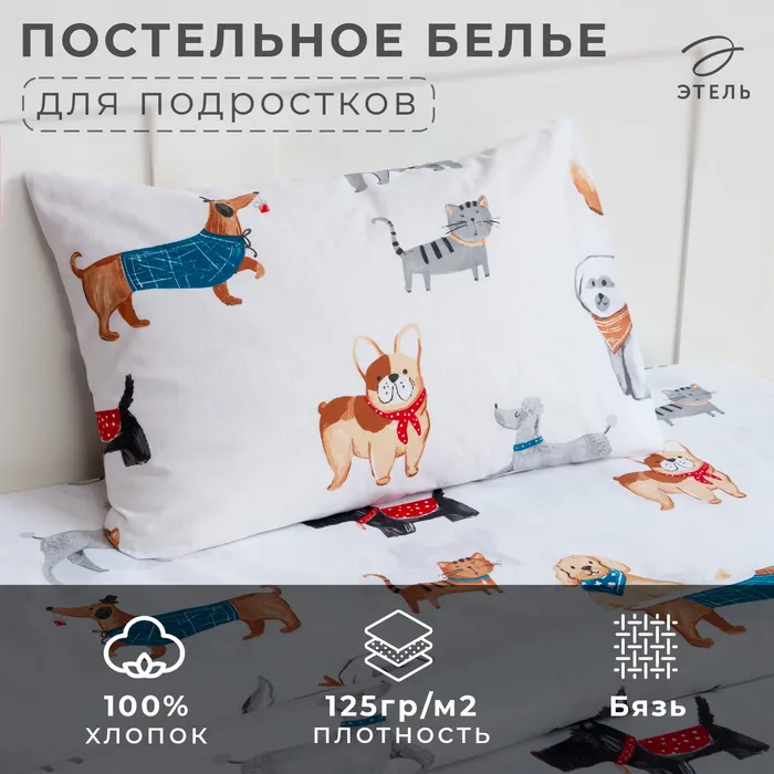 Постельное бельё Этель 1.5 сп Dog party, 143*215 см, 150*214 см, 50*70 см -1 шт,100% хлопок, бязь — Характеристики