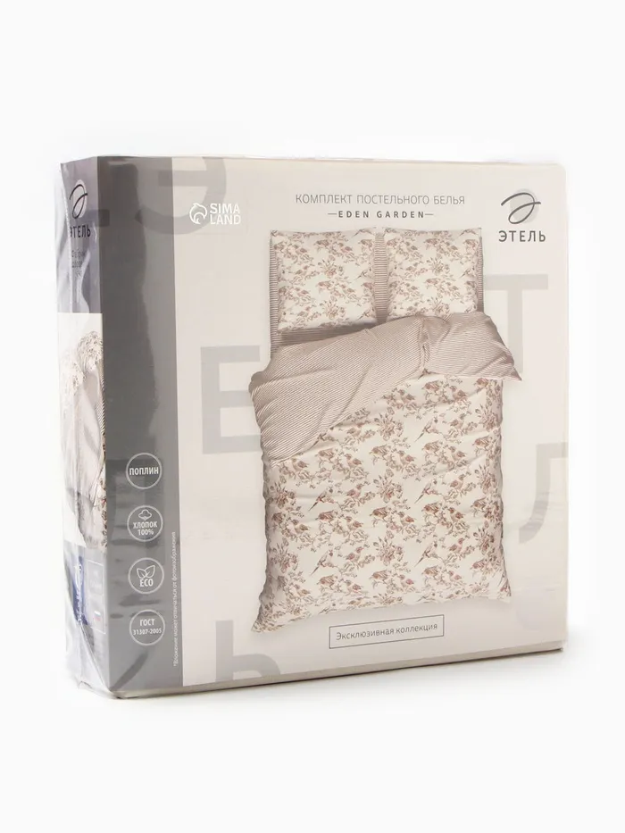 Постельное бельё "Этель" 1.5 сп Eden Garden 143*215 см,150*214 см, 70*70 см-2 шт, поплин 125 г/м2, хл 100% — Характеристики