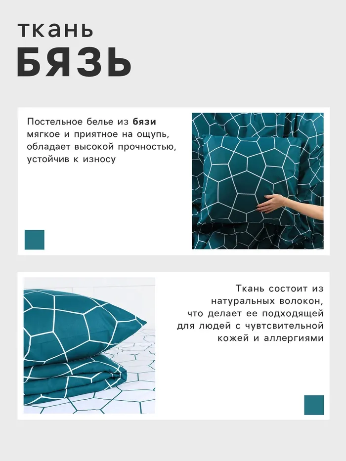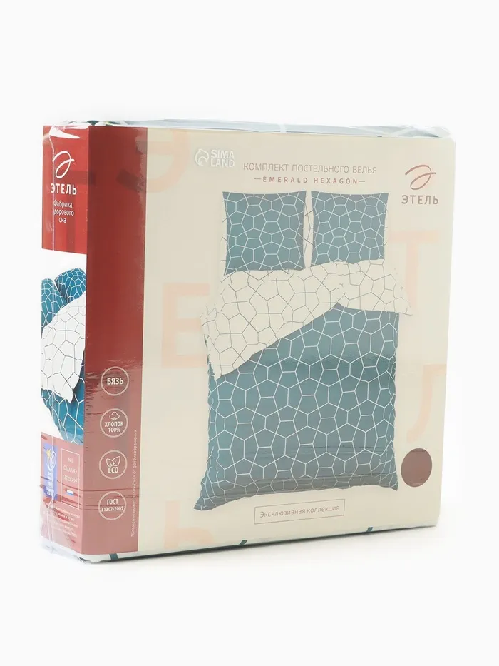 Постельное бельё "Этель" 1.5 сп Emerald hexagon 143*215 см,150*214 см, 70*70 см -2 шт, бязь 125 г/м2, хл 100% — Характеристики