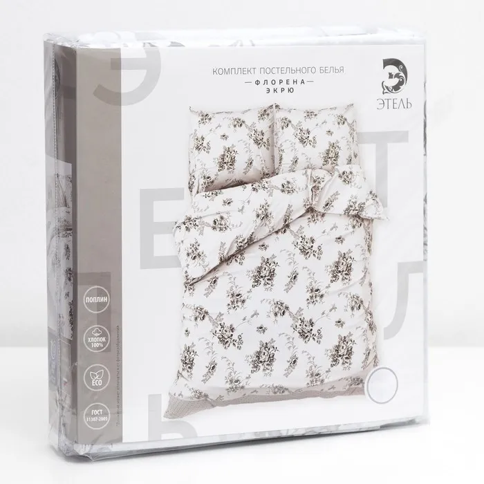 Постельное бельё "Этель" 1,5 сп., Флорена Экрю, размер 143х215 см, 150х214 см, 70х70 см - 2 шт., 100% хлопок, поплин, 125 г/м2 — Характеристики