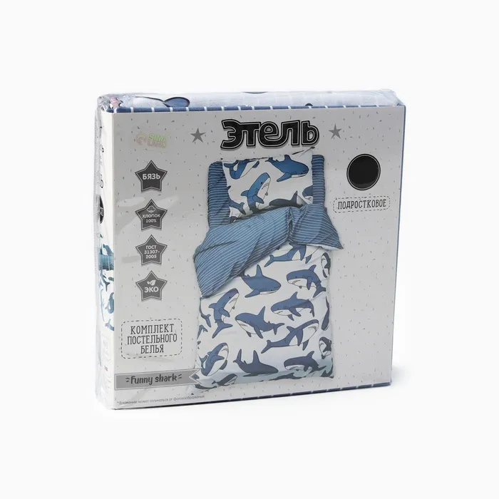 Постельное бельё Этель 1,5 сп Funny shark 143х215 см, 150х214 см, 50х70 см -1 шт, 100% хл, бязь — Характеристики