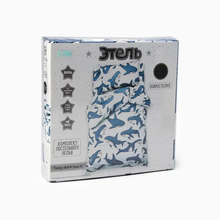Постельное бельё Этель 1,5 сп Funny shark (вид 2) 143х215 см, 150х214 см, 50х70 см -1 шт, 100% хл, бязь — Характеристики