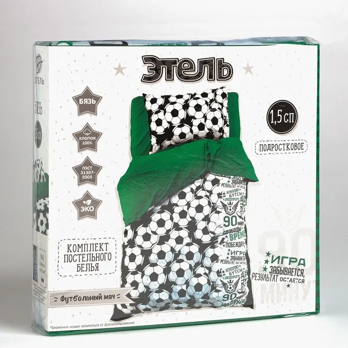 Постельное бельё "Этель" 1,5 сп Футбольный мяч 143*215 см, 150*214 см, 50*70 см - 1 шт, 100% хл, бязь 125 г/м2 — Характеристики