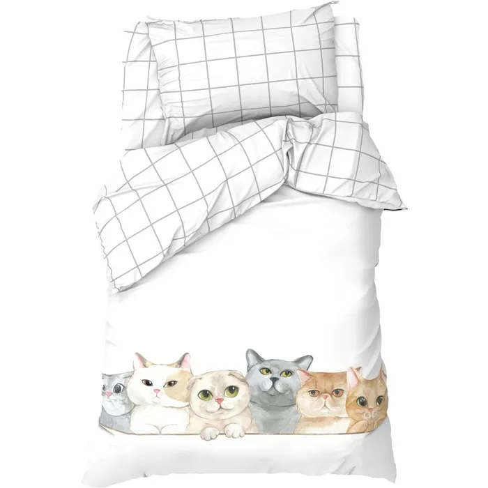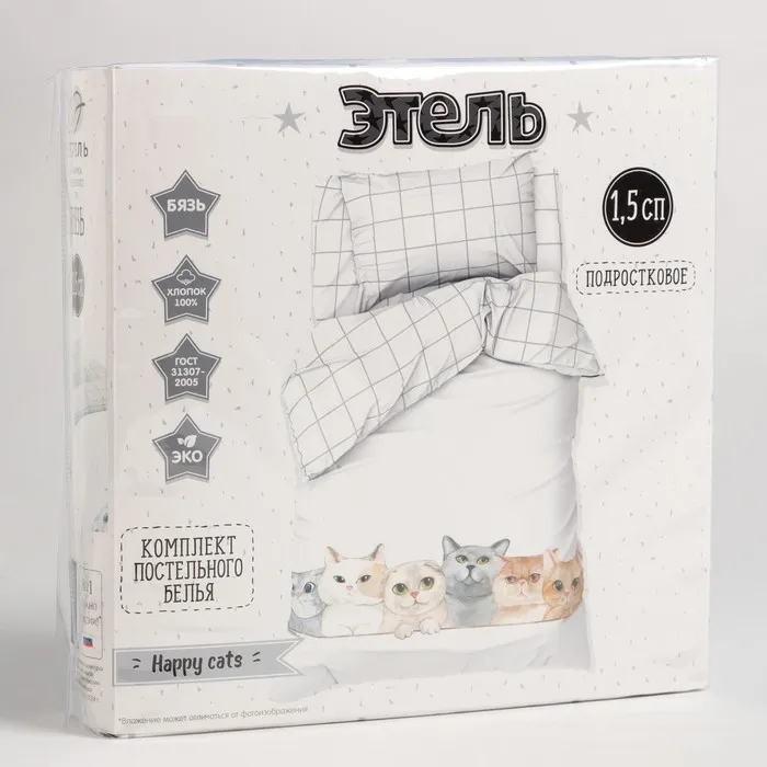 Постельное бельё Этель 1,5 сп "Happy cats" 143х215 см, 150х214 см, 50х70 см -1 шт, 100 % хлопок, бязь — Характеристики
