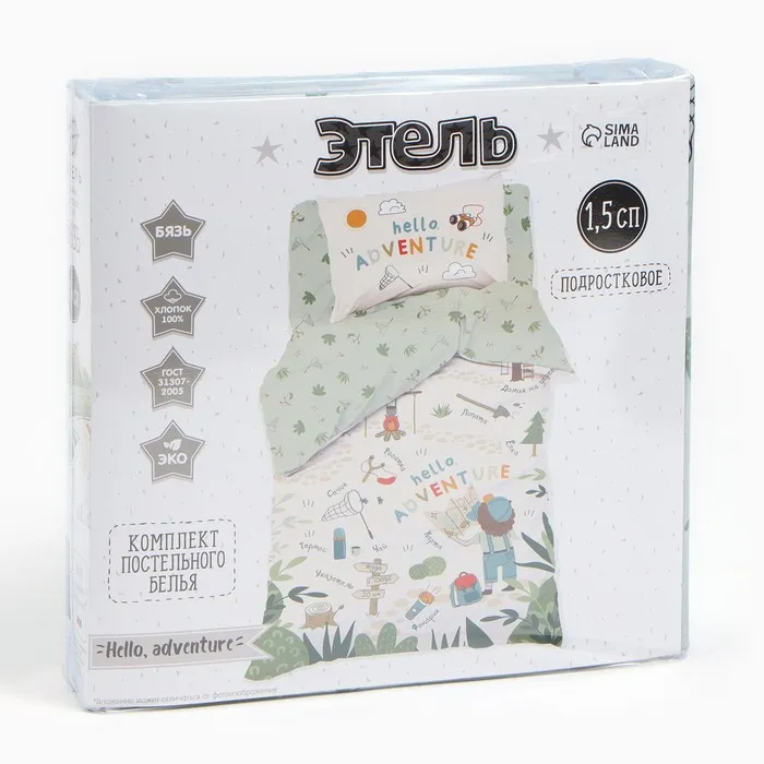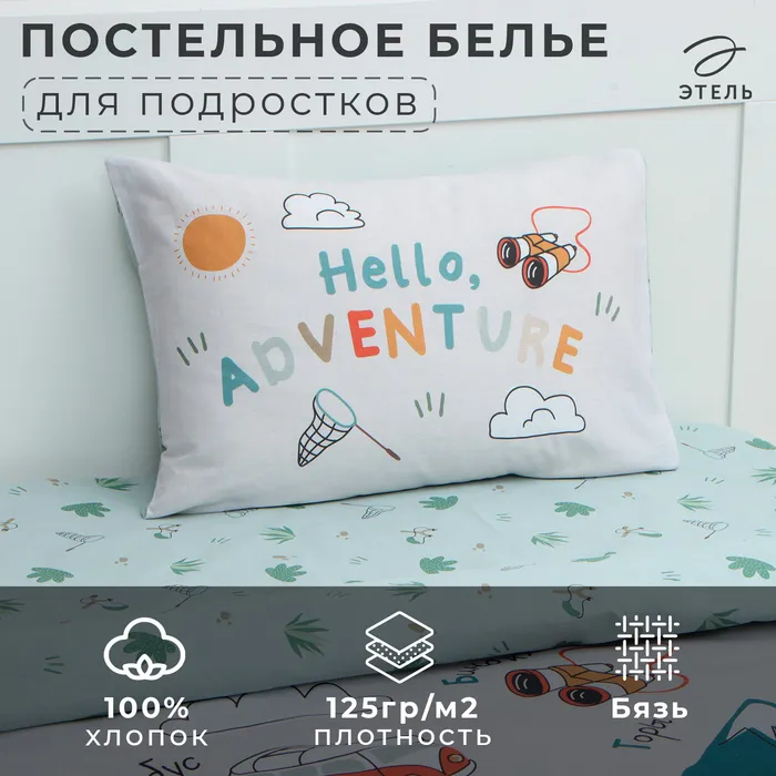Постельное бельё Этель 1,5 сп Hello, adventure, 143х215 см, 150х214 см, 50х70 см -1 шт, 100% хл, бязь — Характеристики