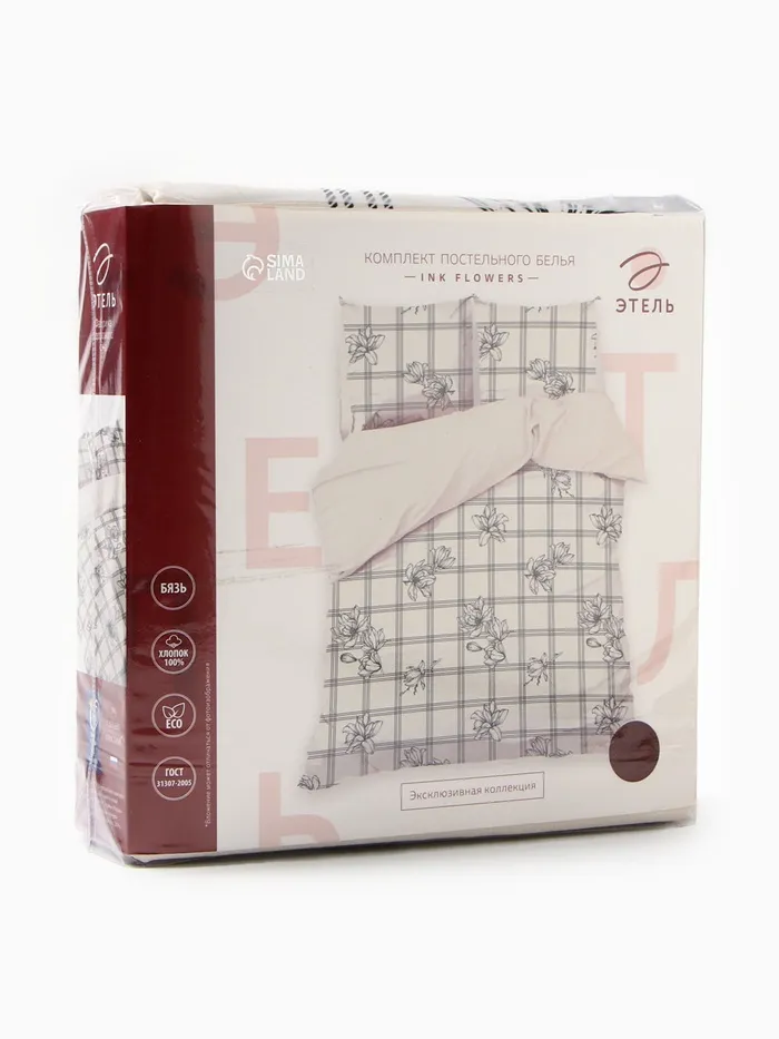Постельное бельё "Этель" 1.5 сп Ink flowers 143*215 см,150*214 см, 70*70 см-2 шт, бязь 125 г/м2, хл 100% — Характеристики