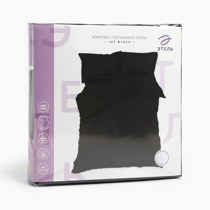 Постельное бельё Этель 1,5 сп "Jet black" 143х215, 150х215, 50х70+3-2 шт, мако-сатин, 114г/м2 — Характеристики