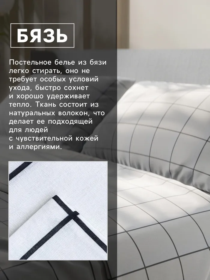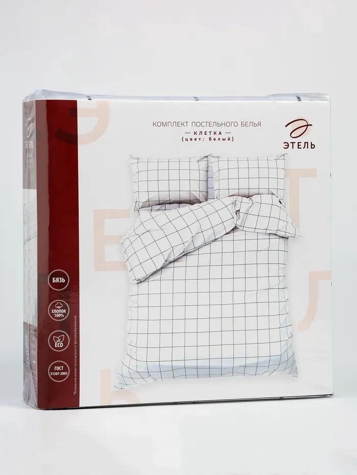 Постельное бельё Этель 1.5 сп «Клетка», белое, 143×215, 150×214, 50×70 см-2 штуки, бязь, 125 г/м² — Характеристики