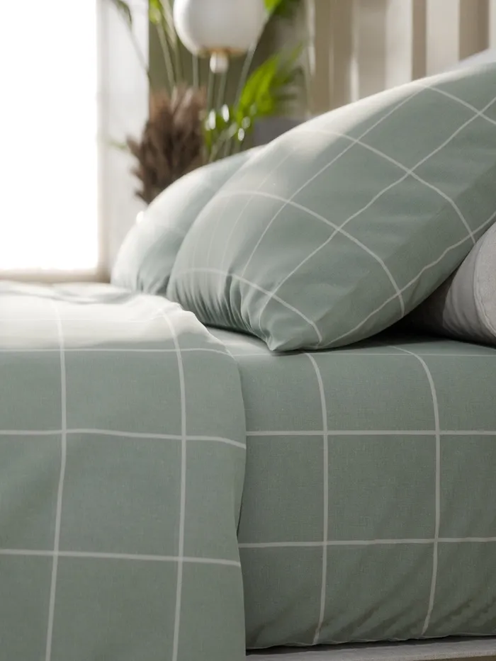 Постельное бельё Этель 1.5 сп «Клетка», оливковое, 143×215, 150×214, 50×70 см-2 штуки, бязь, 125 г/м² — Характеристики