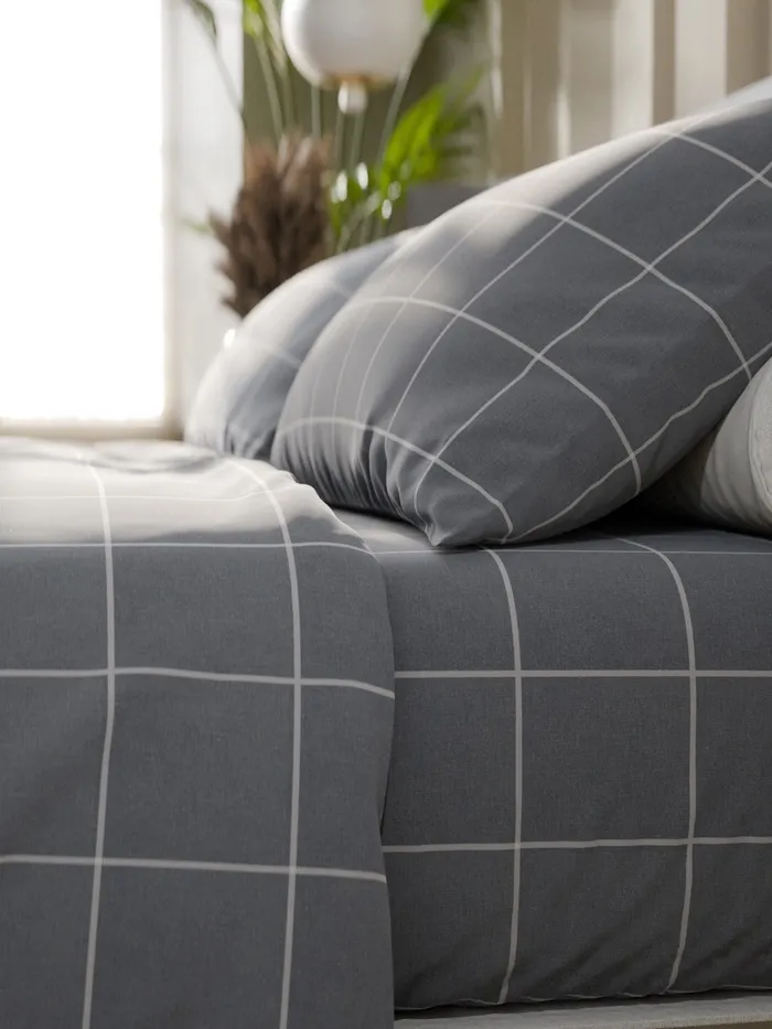 Постельное бельё Этель 1.5 сп «Клетка», серое, 143×215, 150×214, 50×70 см-2 штуки, бязь, 125 г/м² — Характеристики