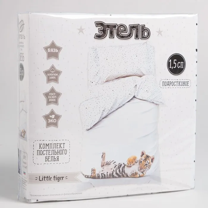 Постельное бельё Этель 1,5 сп "Little tiger" 143х215 см, 150х214 см, 50х70 см -1 шт, 100% хл, бязь — Характеристики