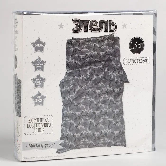 Постельное бельё Этель 1,5 сп "Military gray" 143х215 см, 150х214 см, 50х70 см -1 шт, 100% хлопок, бязь — Характеристики