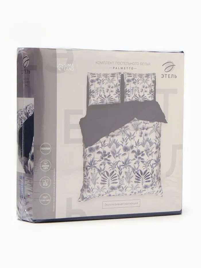 Постельное бельё "Этель" 1.5 сп Palmetto 143*215 см,150*214 см, 70*70 см -2 шт, поплин 125 г/м2, хл 100% — Характеристики
