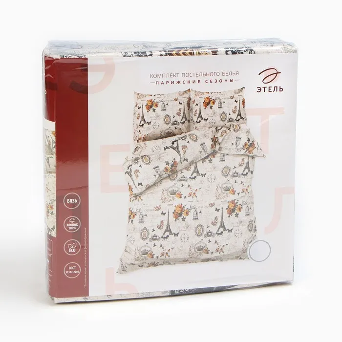 Постельное бельё "Этель" 1,5 сп. Парижские сезоны143х215 см, 150х214 см, 70х70 см - 2 шт., 100% хлопок, бязь 125 г/м² — Характеристики