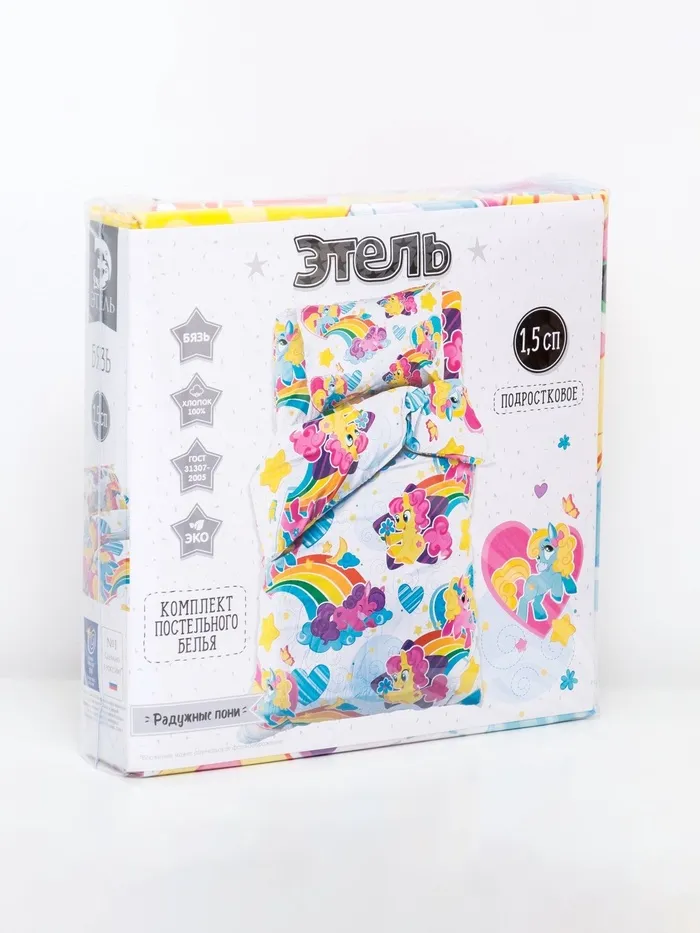 Постельное бельё "Этель" 1,5 сп., Радужные пони 143х215 см, 150х214 см, 50х70 см -1 шт., 100% хлопок, бязь, 125 г/м2 — Характеристики