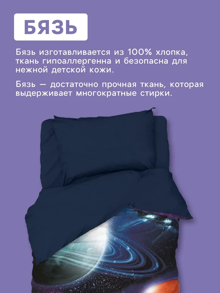 Постельное бельё Этель 1,5 сп "Space trip" 143х215 см, 150х214 см, 50х70 см -1 шт, 100 % хлопок, бязь — Характеристики