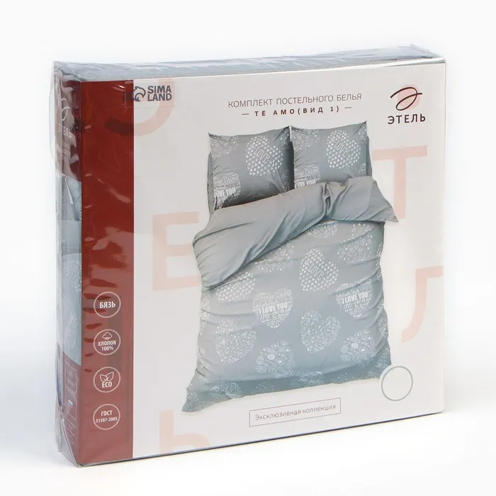 Постельное бельё "Этель" 1.5 сп Te amo (вид 1) 143 х 215 см,150 х 214 см, 70 х 70 - 2 шт, бязь — Характеристики