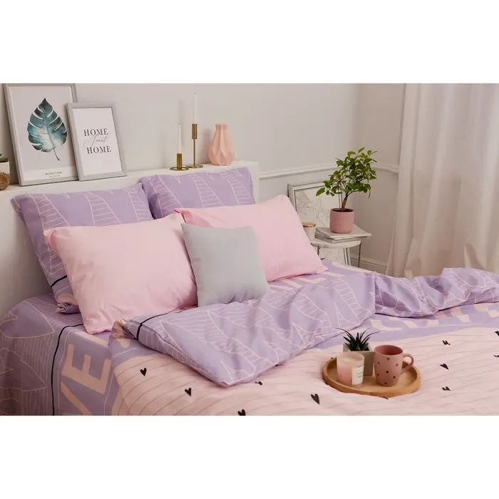 Постельное бельё «Этель» 1.5 сп Violet love 143*215 см, 150*214 см, 70*70 см - 2 шт, бязь 125 г/м2