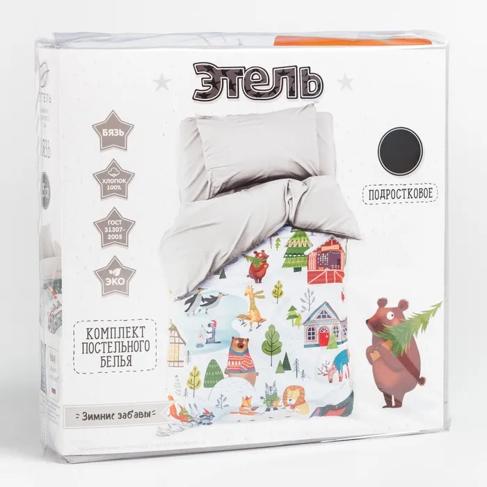 Постельное бельё "Этель" 1,5 сп Зимние забавы 143х215 см, 150х214 см, 50х70 см -1 штука, 100% хлопок, бязь 125 г 43494 — Характеристики