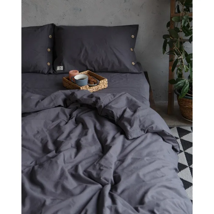 Постельное бельё Этель 2 сп 180*210см, 220*240 см,50*70-2шт, цвет тёмно-серый, 100% жатый хлопок, 140гр/м2 — Характеристики