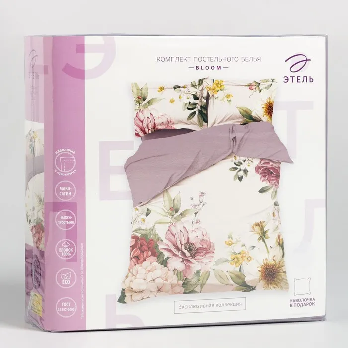 Постельное бельё Этель 2 сп Bloom 175*215 см, 200*217см, 50*70+3см -2 шт, мако-сатин — Характеристики