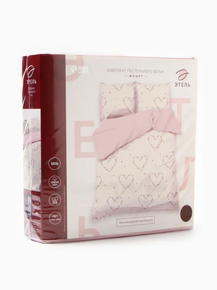 Постельное бельё "Этель" 2 сп Флирт 175*215 см, 200*220 см, 70*70 см -2 шт, бязь 125 г/м2, хл 100% — Характеристики