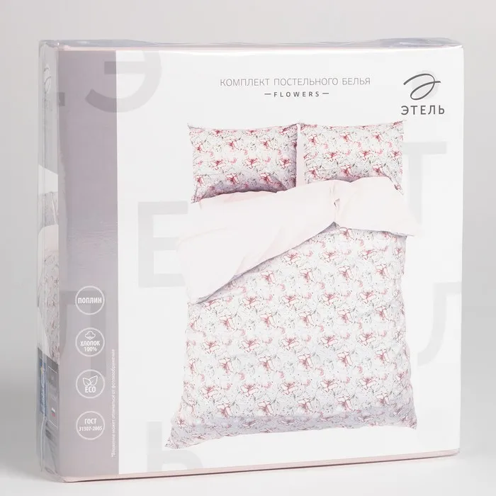 Постельное бельё Этель 2 сп Flowers 175х215см,200х220см,50х70см-2 шт, поплин,125 г/м2 — Характеристики