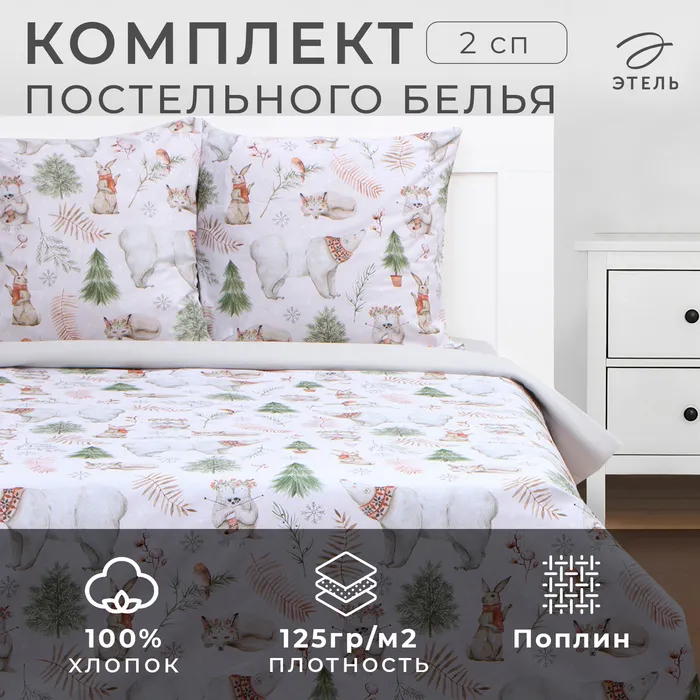 Постельное бельё "Этель" 2 сп Forest history 175х215 см, 200х220 см,70х70 см -2 шт, поплин — Характеристики