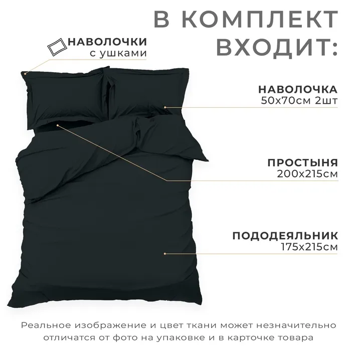 Постельное бельё Этель 2 сп "Jet black" 175х215, 200х215, 50х70+3-2 шт, мако-сатин, 114г/м2 — Характеристики