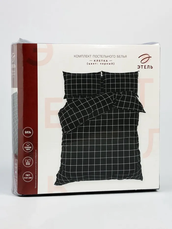 Постельное бельё Этель 2 сп «Клетка», чёрное, 175×215, 200×220, 50×70-2 штуки, бязь, 125 г/м² — Характеристики