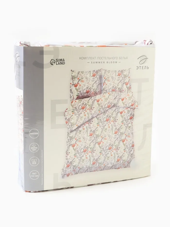 Постельное бельё "Этель" 2 сп Summer bloom 175*215 см, 200*220 см, 70*70 см-2 шт, поплин 125 г/м2, хл 100% — Характеристики