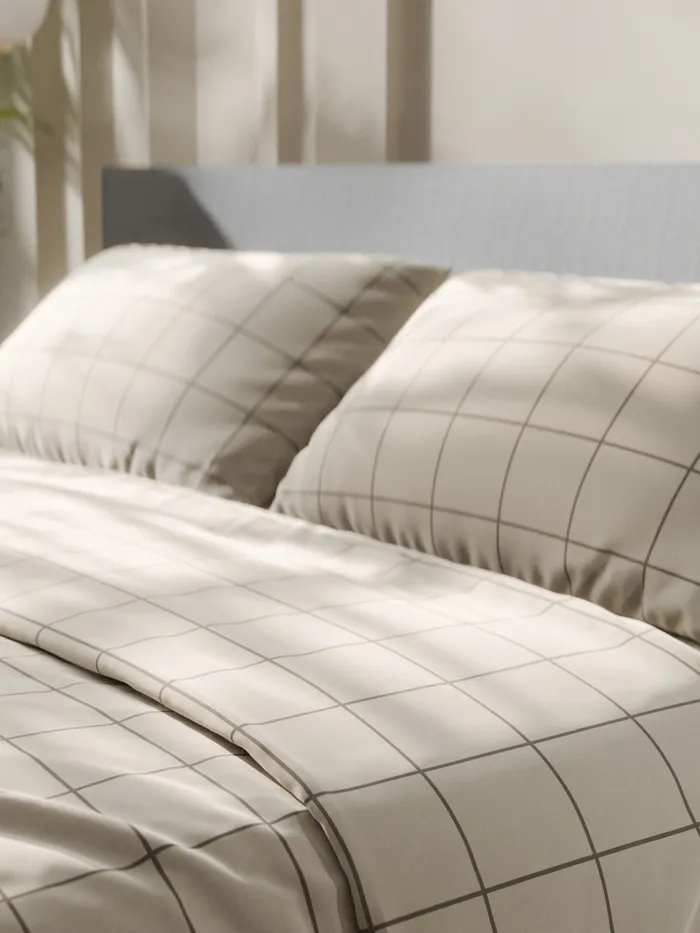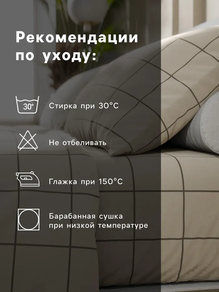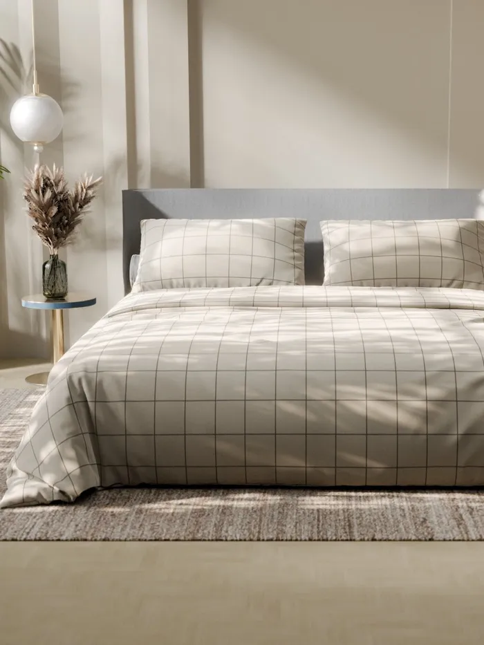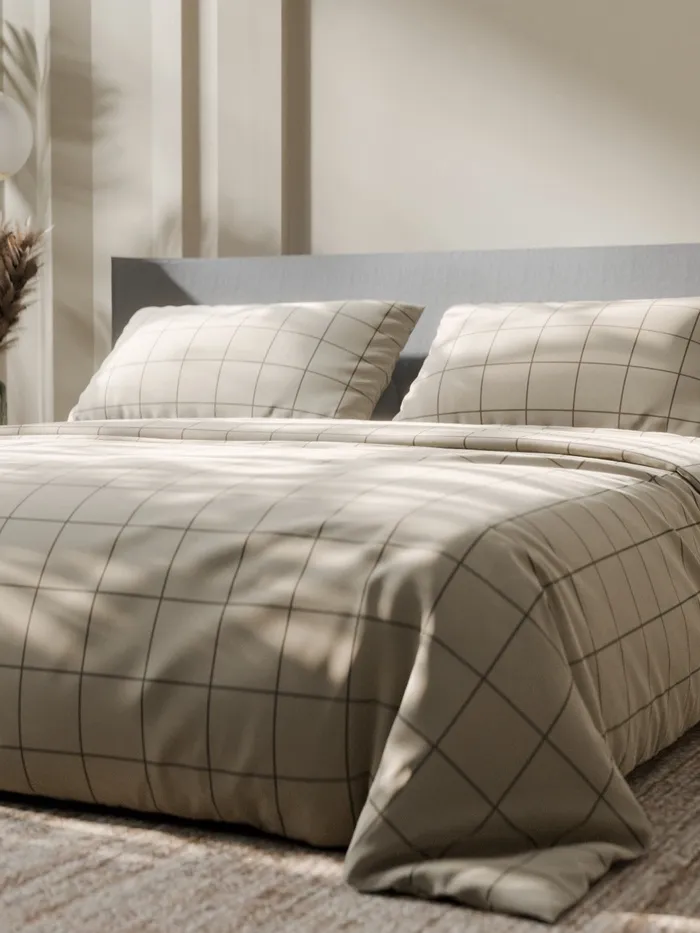 Постельное бельё Этель Дуэт «Клетка», бежевое, 143×215-2 штуки, 220×240, 50×70-2 штуки, бязь, 125 г/м² — Характеристики