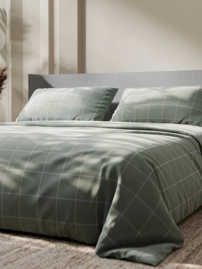 Постельное бельё Этель Дуэт «Клетка», оливковое, 143×215-2 штуки, 220×240, 50×70-2 штуки, бязь, 125 г/м² — Характеристики