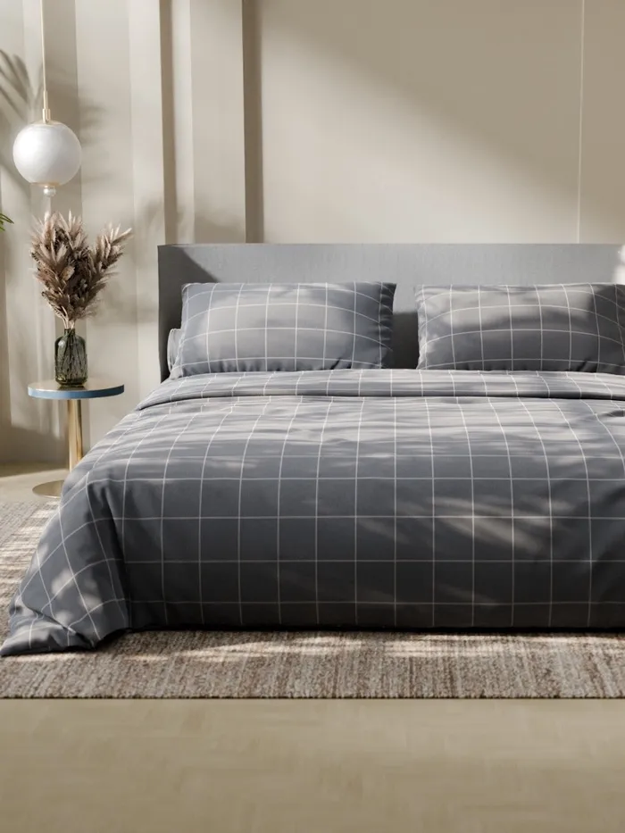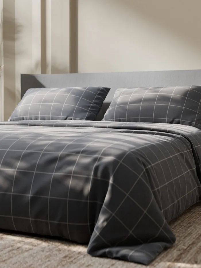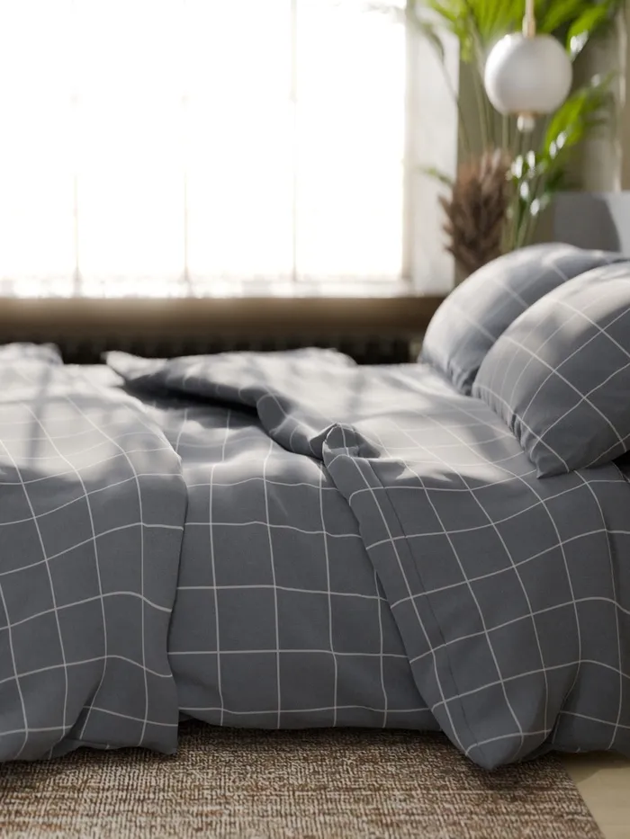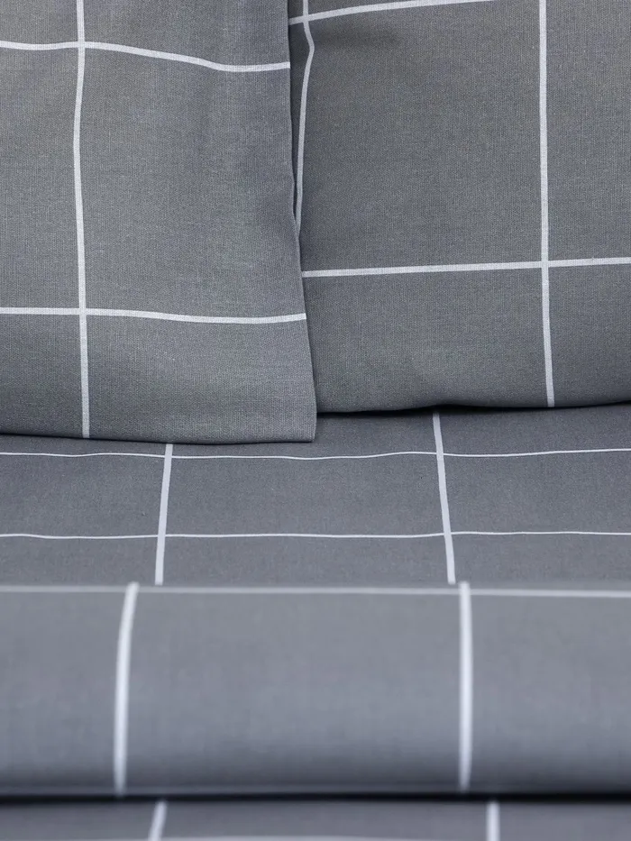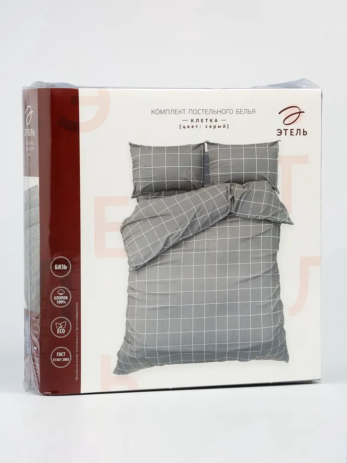 Постельное бельё Этель Дуэт «Клетка», серое, 143×215-2 штуки, 220×240, 50×70-2 штуки, бязь, 125 г/м² — Характеристики