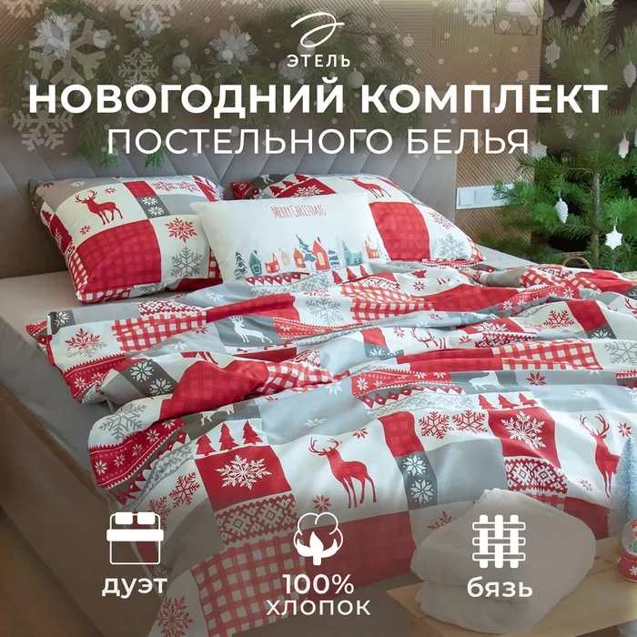 Постельное бельё «Этель» дуэт New Year's patchwork 143х215 см 2 шт,220х240см,70х70см-2шт,бязь 125г/м2 — Характеристики