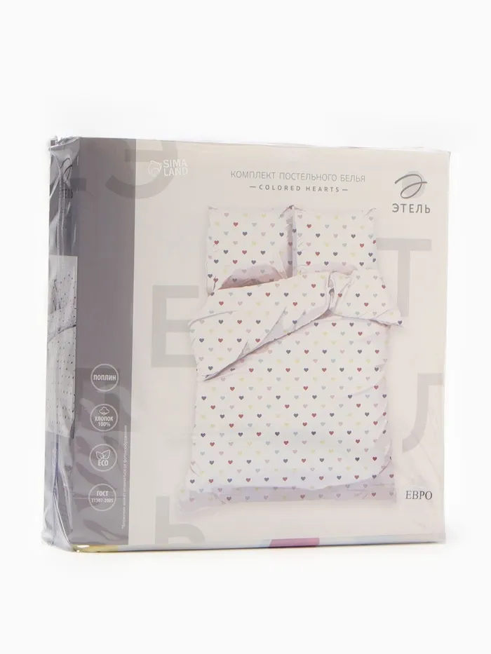 Постельное бельё «Этель» Дуэт Сolored Hearts 143×215 см-2 шт., 220×240 см, 70×70 см-2 шт., поплин 125 г/м², хлопок 100% — Характеристики